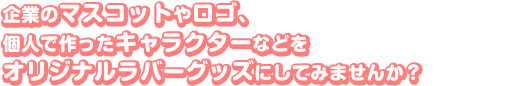 オリジナルのキャラクターやロゴで、ラバー製のストラップを制作します。ラバーグッズは、スマフォなどを傷つける心配のないゴム系の素材なので、ストラップにうってつけのアイテムです。