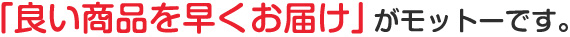 当店では、「良い商品をできるだけ早くお届け」することをモットーに、ご依頼にスピード対応しております。