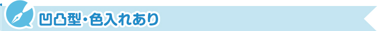 特徴は凹凸+色入れによるくっきりしたデザインの再現です。インク色に加えて、凹凸によって陰影がつくため、色々な場所ではっきりとデザインを見ることが出来ます。