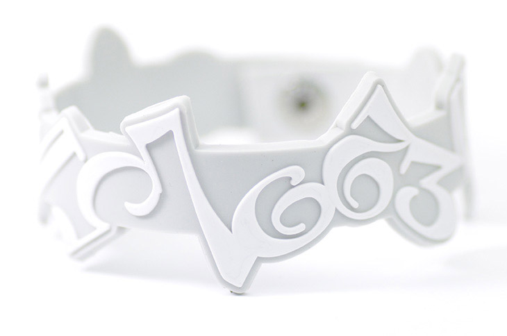 単純に、バンドとして幅を広くしたり、輪のサイズを変えたり……というだけではなく、外形・シルエットも変えることができるので、製作事例のように、一部分(特に目立たせたいロゴマーク部分など)だけ変形にすることで、注目を集めたり、デザイン性を高めたりといったより自由なシリコンバンド作りがお楽しみいただけます。